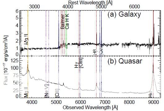 However, when they took a detailed spectrum, they found the quasar and galaxy have the same redshift (image is Figure 3